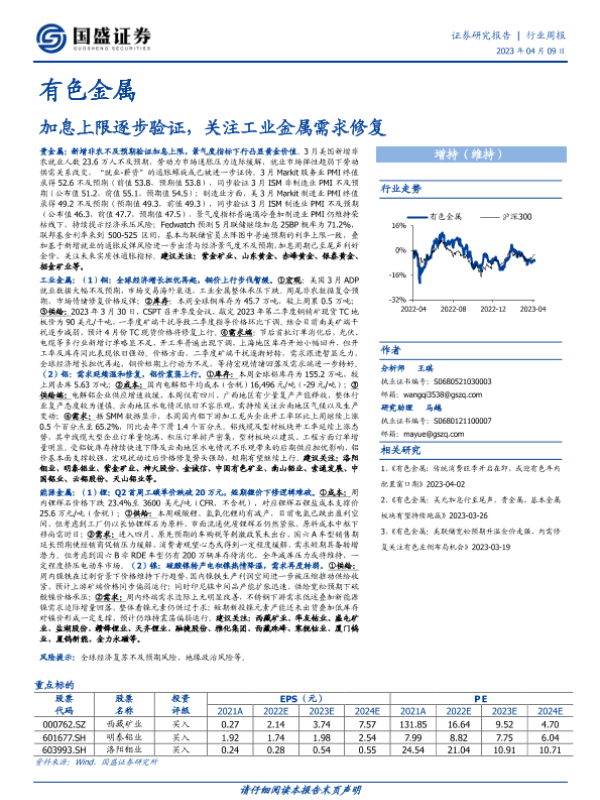 【国盛证券】【20230409】20230409-国盛证券-有色金属行业周报:加息上限逐步验证,关注工业金属需求修复-31页 行业研究