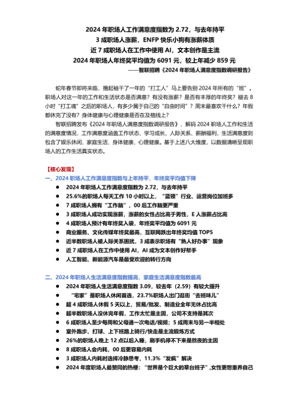 【智联招聘】【20250123】2024年职场人满意度指数调研报告-15页 市场调研