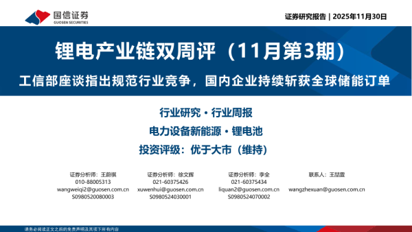 【国信证券】【202511】锂电产业链双周评(11月第3期)-19页 证券期货研究报告