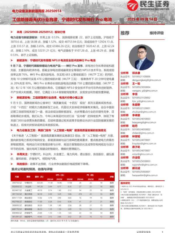 【民生证券】【202509】电力设备及新能源周报 20250914-23页 证券期货研究报告