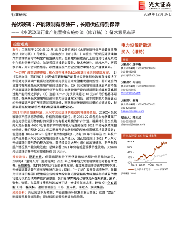 【光大证券】【20201216】光伏玻璃:产能限制有序放开,长期供应得到保障-2页 行业研究