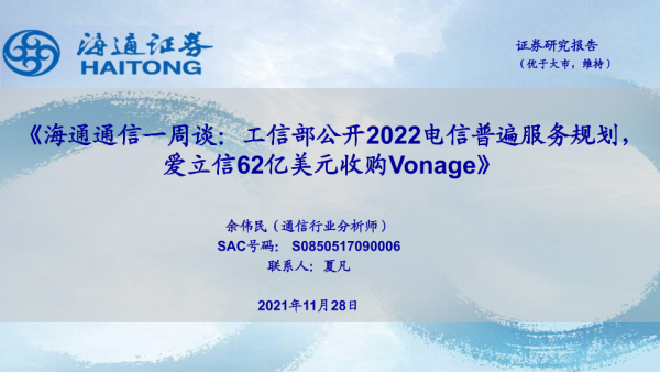 【海通证券】【20211128】海通通信一周谈:工信部公开2022电信普遍服务规划,爱立信62亿美元收购Vonage-11页 行业研究