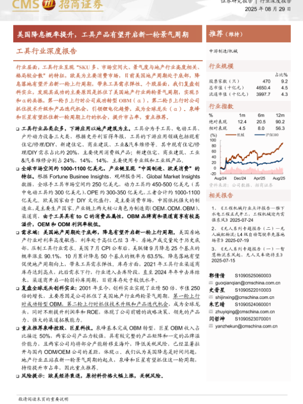 【CMS】【20250829】工具行业深度报告:美国降息概率提升,工具产品有望开启新一轮景气周期-21页 证券期货研究报告