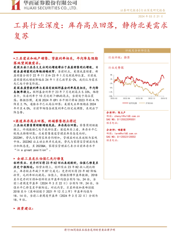 【华西证券】【20240321】工具行业深度:库存高点回落,静待北美需求复苏-20页 行业研究