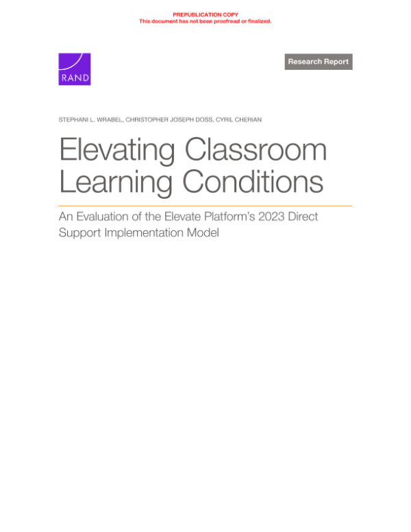 【RAND Corporation】【2025】Elevating Classroom Learning Conditions An Evaluation of the Elevate Platform’s 2023 Direct Support Implementation Model-25页 学术论文