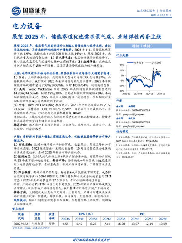 【国盛证券】【20241231】展望2025年,储能赛道优选需求景气度、业绩弹性两条主线-19页 行业研究