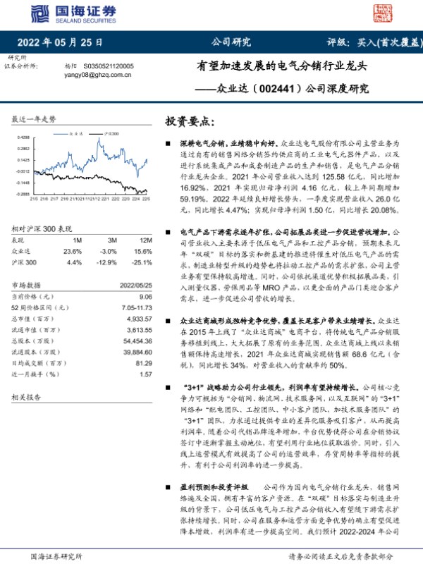 【国海证券】【20220525】有望加速发展的电气分销行业龙头——众业达(002441)公司深度研究-24页 行业研究