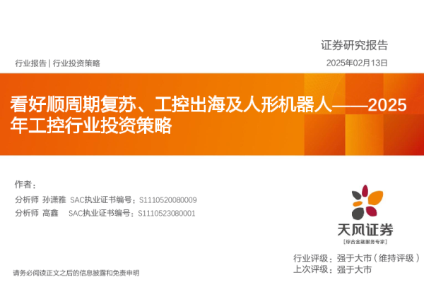 【天风证券】【20250213】2025年工控行业投资策略:看好顺周期复苏、工控出海及人形机器人-38页 行业研究