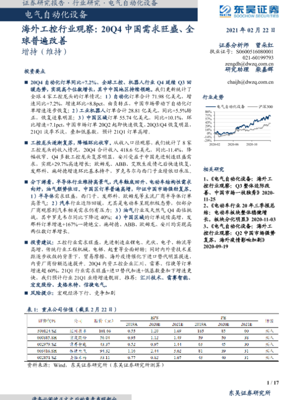 【东吴证券】【20210222】海外工控行业观察:20Q4中国需求旺盛、全球普遍改善-17页 行业研究