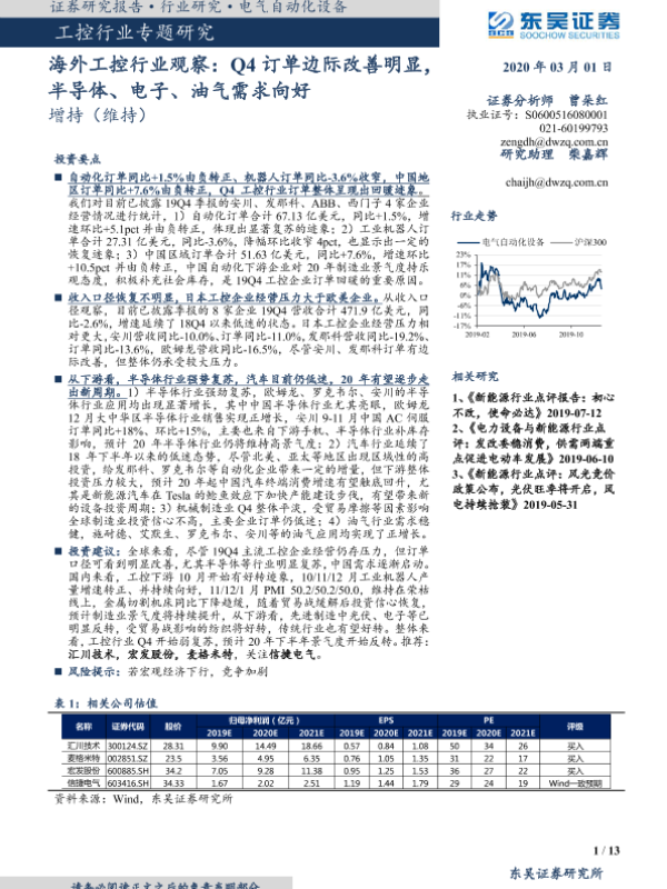 【东吴证券】【20200301】海外工控行业观察:Q4订单边际改善明显,半导体、电子、油气需求向好-13页 行业研究