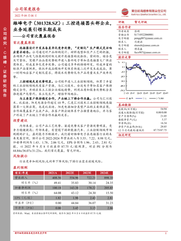 【东亚前海证券】【20220908】维峰电子:工控连接器头部企业,业务延展引领长期成长-10页 行业研究