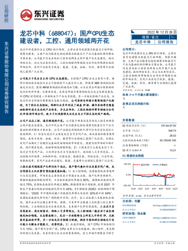 【东兴证券】【20221228】龙芯中科:国产CPU生态建设者,工控、通用领域两开花-28页 行业研究