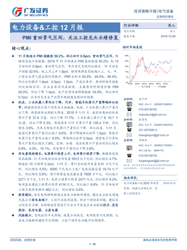 【广发证券】【20191229】电力设备&工控12月报:PMI重回景气区间,关注工控龙头业绩修复-19页 行业研究