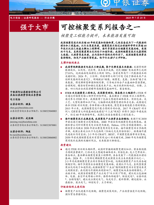 【中银证券】【20250725】可控核聚变系列报告之一:核聚变工程能力提升,未来能源发展可期-21页 证券期货研究报告