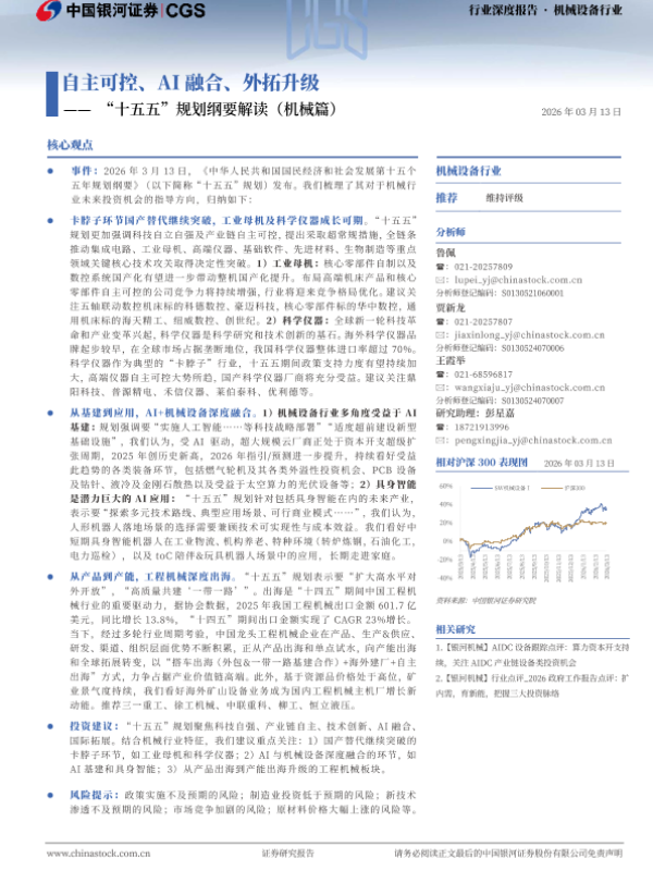【银河证券】【202603】“十五五”规划纲要解读(机械篇)-自主可控、AI融合、外拓升级-20页 证券期货研究报告