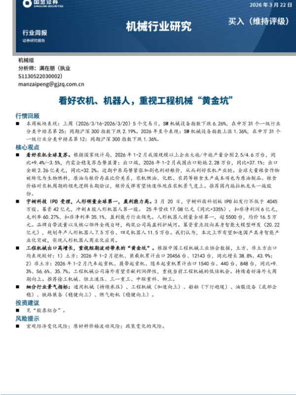 【国金证券】【202603】看好农机、机器人,重视工程机械“黄金坑”-15页 证券期货研究报告