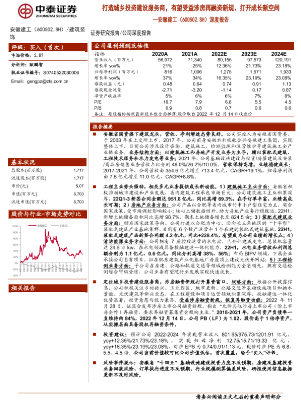 【中泰证券】【20221215】20221215-中泰证券-安徽建工-600502.SH-深度报告:打造城乡投资建设服务商,有望受益涉房再融资新规、打开成长新空间-25页 行业研究