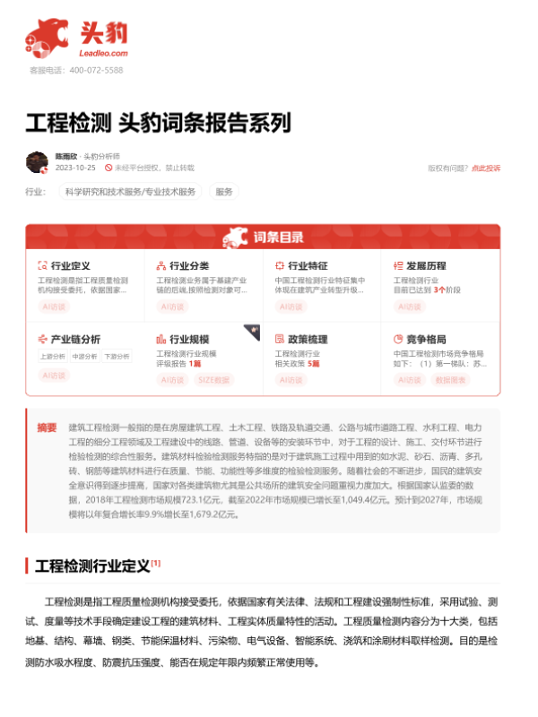 【头豹研究院】【20231025】工程检测 头豹词条报告系列-18页 行业研究