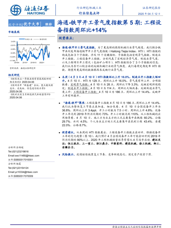 【海通证券】【20200412】海通-铁甲开工景气度指数第5期:工程设备指数周环比+14%-5页 行业研究