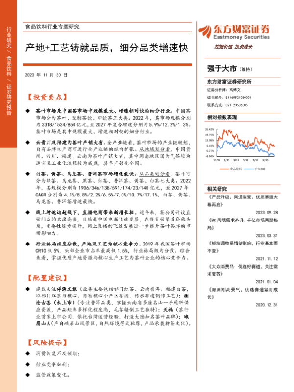 【东方财富证券】【20231130】食品饮料行业专题研究:产地+工艺铸就品质,细分品类增速快-31页 行业研究