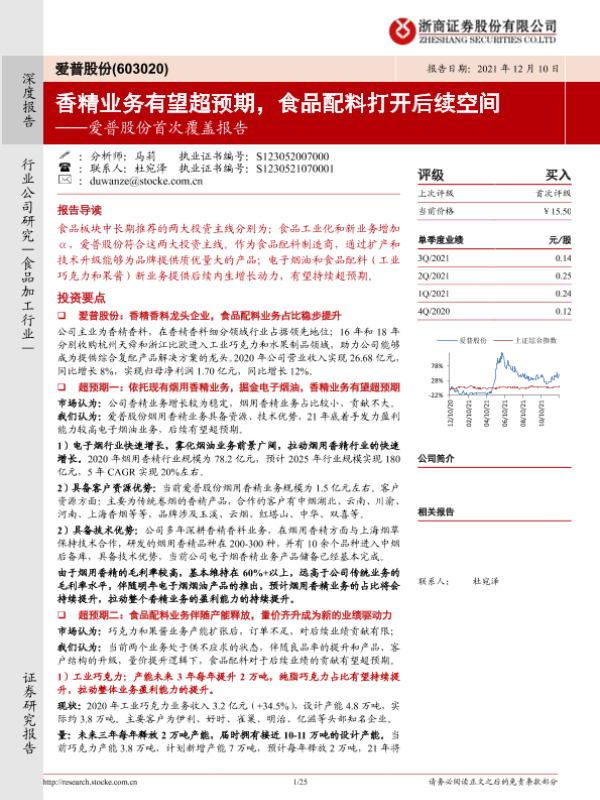 【浙商证券】【20211210】爱普股份首次覆盖报告:香精业务有望超预期,食品配料打开后续空间-25页 行业研究