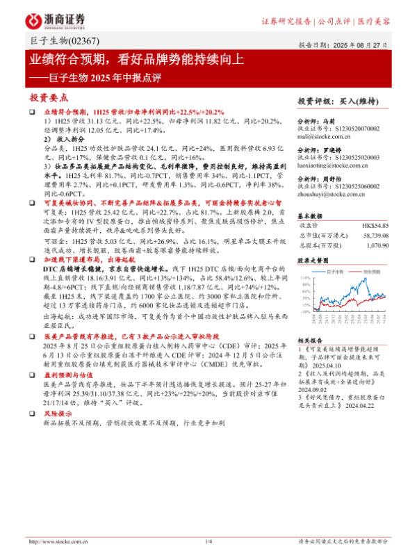 【浙商证券】【20250827】巨子生物-巨子生物2025年中报点评_业绩符合预期_看好品牌势能持续向上-4页 证券期货研究报告
