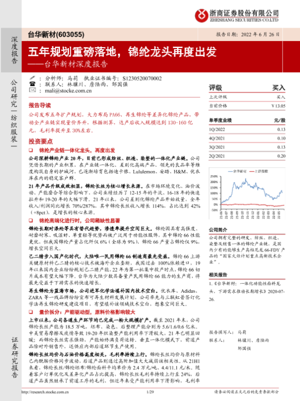【浙商证券】【20220626】台华新材深度报告:五年规划重磅落地,锦纶龙头再度出发-29页 行业研究