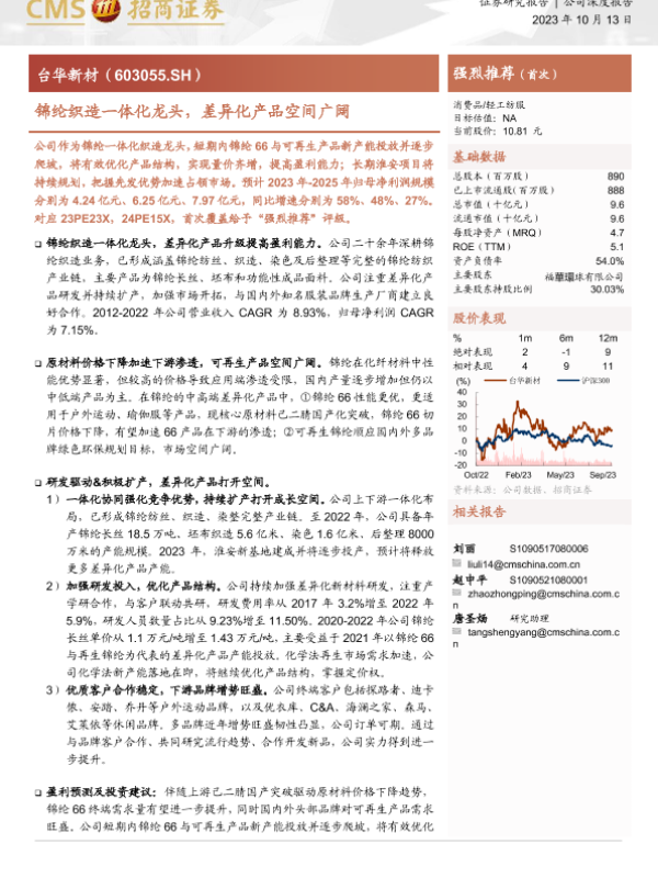 【海通证券】【20231013】20231013-招商证券-台华新材-603055.SH-锦纶织造一体化龙头,差异化产品空间广阔-24页 行业研究