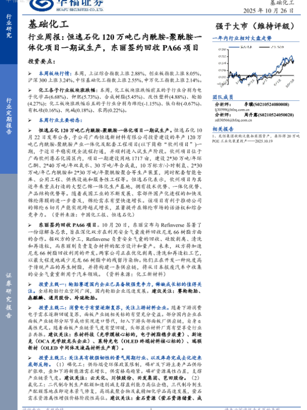 【华福证券】【202510】基础化工行业周报:恒逸石化120万吨己内酰胺-聚酰胺一体化项目一期试生产,东丽签约回收PA66项目-21页 证券期货研究报告
