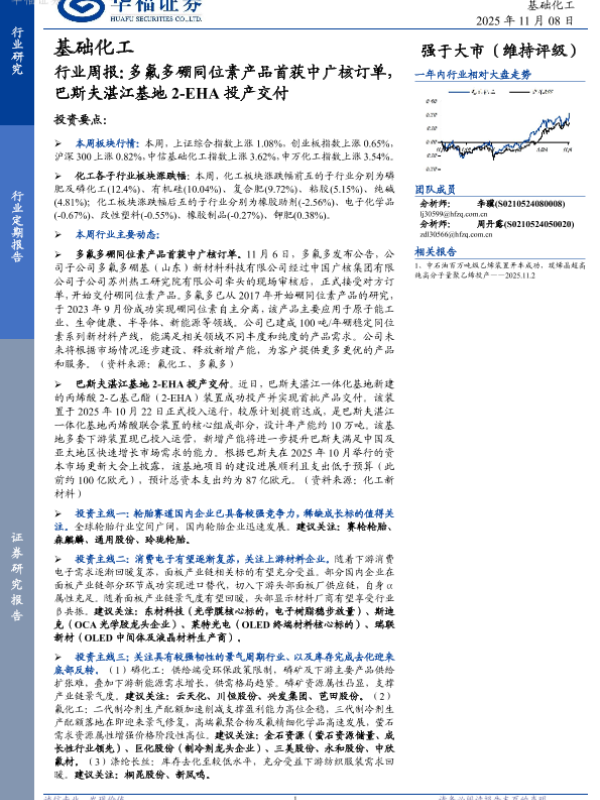 【华福证券】【202511】基础化工行业周报:多氟多硼同位素产品首获中广核订单,巴斯夫湛江基地2-EHA投产交付-21页 证券期货研究报告