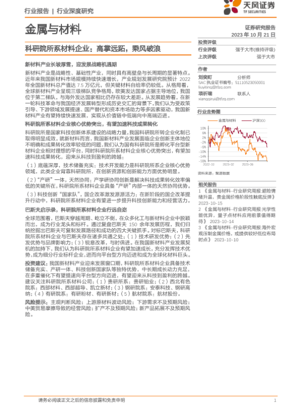 【天风证券】【20231021】金属与材料行业科研院所系材料企业:高掌远跖,乘风破浪-35页 行业研究