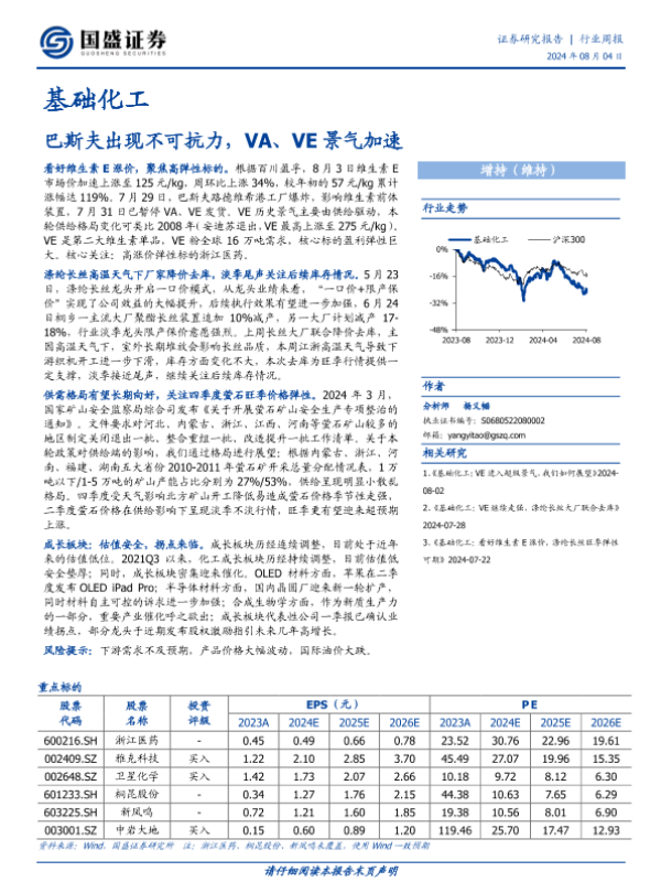 【国盛证券】【20240804】基础化工行业周报:巴斯夫出现不可抗力,VA、VE景气加速-17页 行业研究