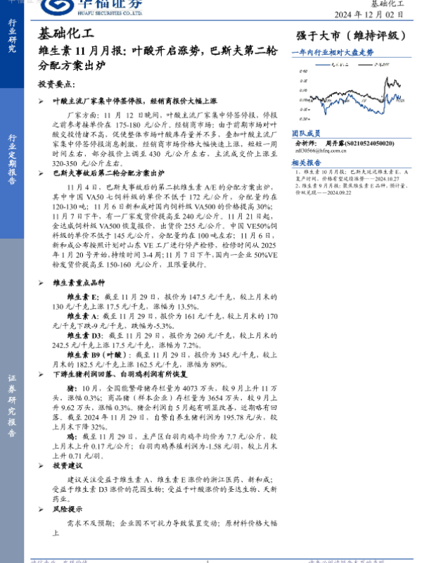 【华福证券】【20241202】维生素11月月报:叶酸开启涨势,巴斯夫第二轮分配方案出炉-11页 行业研究