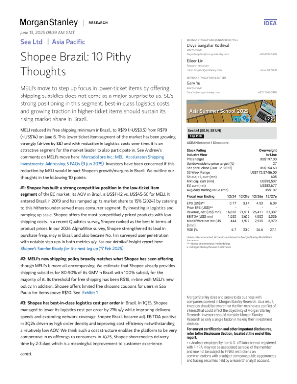 【Morgan Stanley】【2025】Shopee Brazil 10 Pithy Thoughts-12页 行业研究