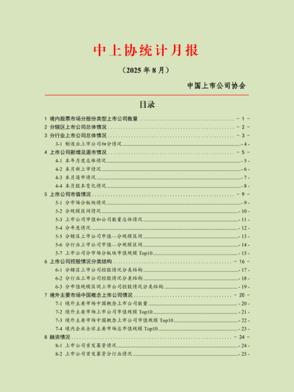 【中国上市公司协会】【202508】中上协统计月报(2025年8月)-26页 市场调研