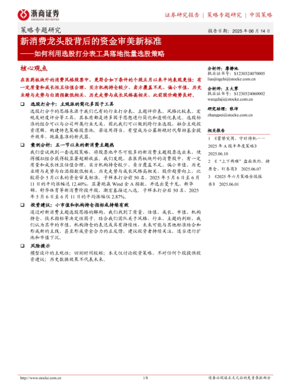 【浙商证券】【20250614】如何利用选股打分表工具落地批量选股策略_新消费龙头股背后的资金审美新标准-8页 证券期货研究报告