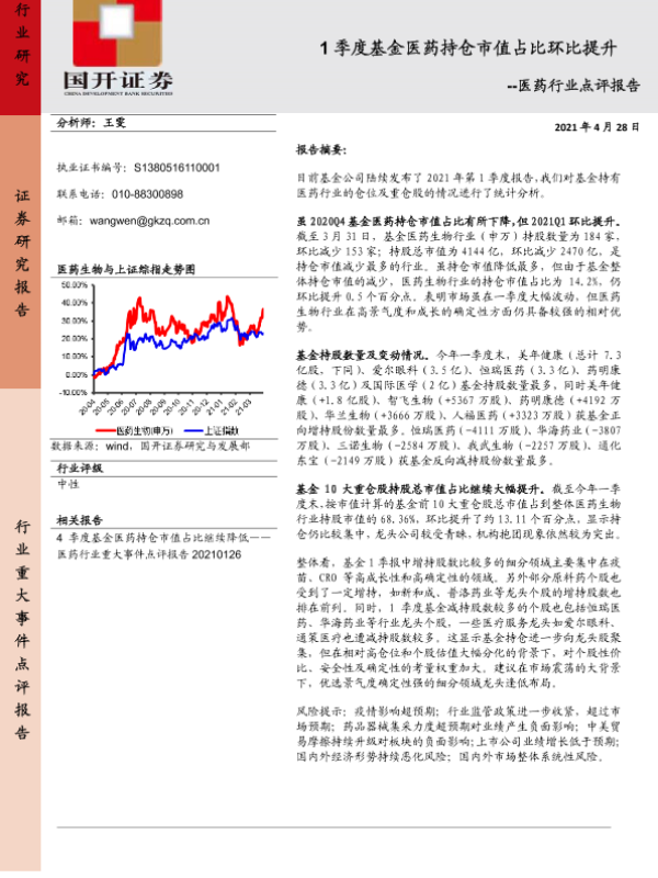 【国开证券】【20210428】1季度基金医药持仓市值占比环比提升-4页 行业研究