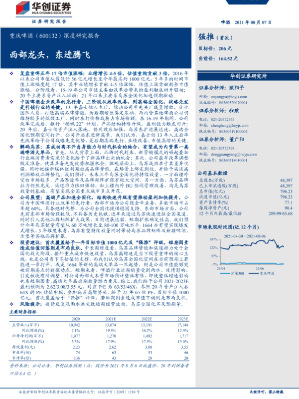 【华创证券】【20210807】20210807-华创证券-重庆啤酒-600132.SH-深度研究报告:西部龙头,东进腾飞-32页 行业研究