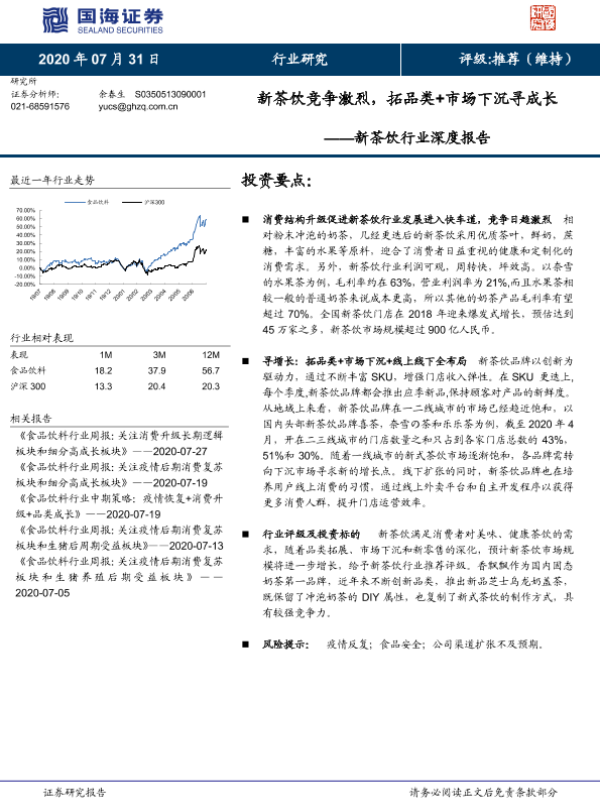【国海证券】【20200731】新茶饮竞争激烈,拓品类+市场下沉寻成长-18页 行业研究