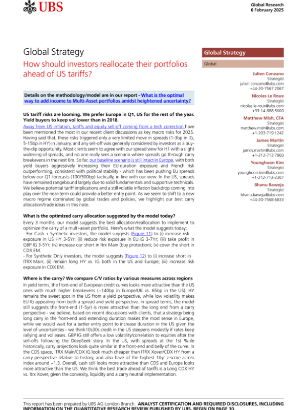 【UBS AG London Branch】【20250206】Global Strategy _How should investors reallocate their portfolios ahead of US tariffs?-13页 宏观策略