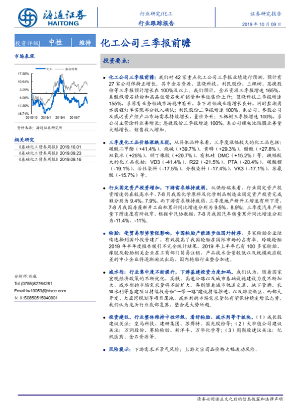 【海通证券】【20191009】20191009-海通证券-化工行业跟踪报告:化工公司三季报前瞻-3页 行业研究