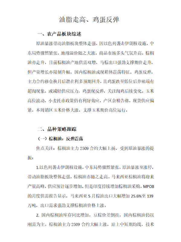 【天富期货】【20250613】油脂走高_鸡蛋反弹-11页 证券期货研究报告