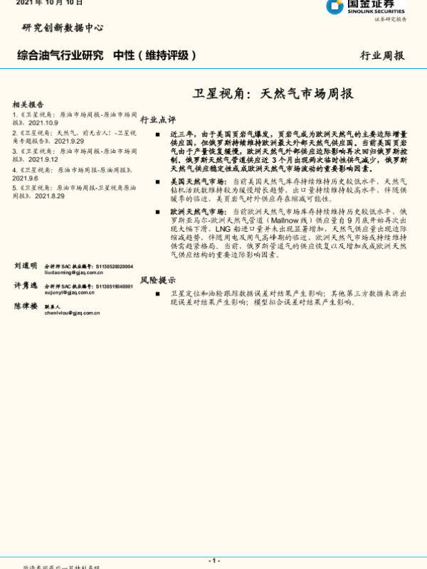 【国金证券】【20211010】综合油气行业周报:卫星视角:天然气市场周报-9页 行业研究