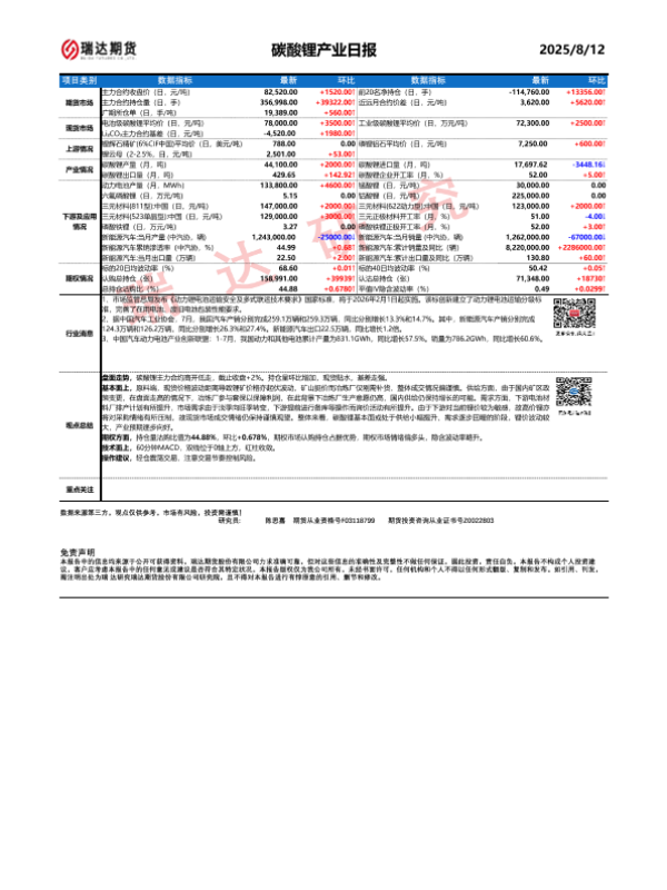 【瑞达期货】【20250812】碳酸锂产业日报-1页 证券期货研究报告