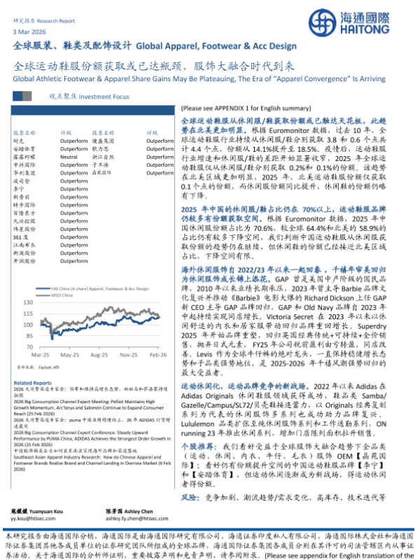 【海通国际】【2025】全球服装、鞋类及配饰设计:全球运动鞋服份额获取或已达瓶颈,服饰大融合时代到来-25页 证券期货研究报告