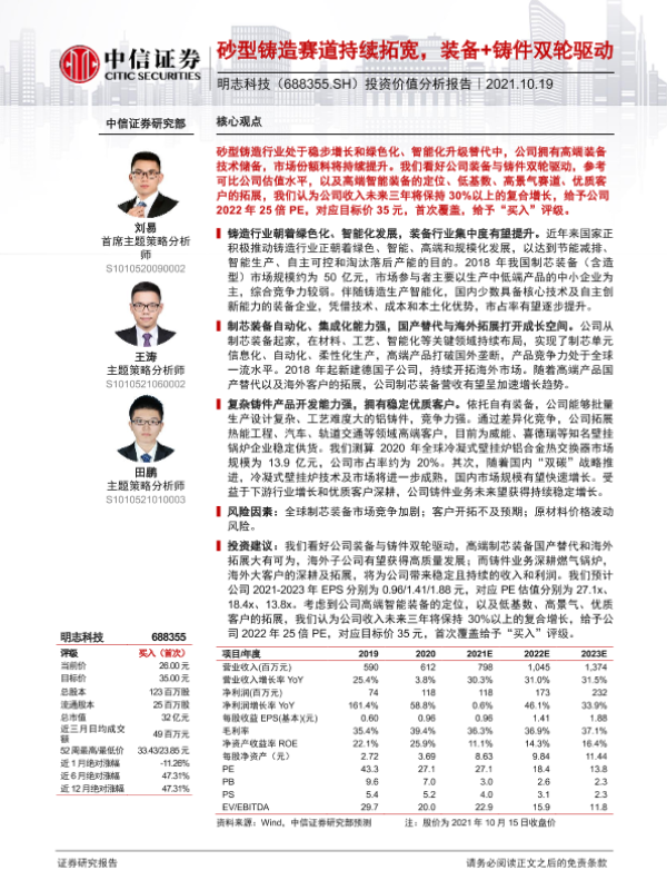 【中信证券】【20211019】砂型铸造赛道持续拓宽,装备+铸件双轮驱动-24页 行业研究