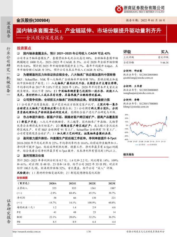 【浙商证券】【20220110】金沃股份深度报告:国内轴承套圈龙头:产业链延伸、市场份额提升驱动量利齐升-30页 行业研究