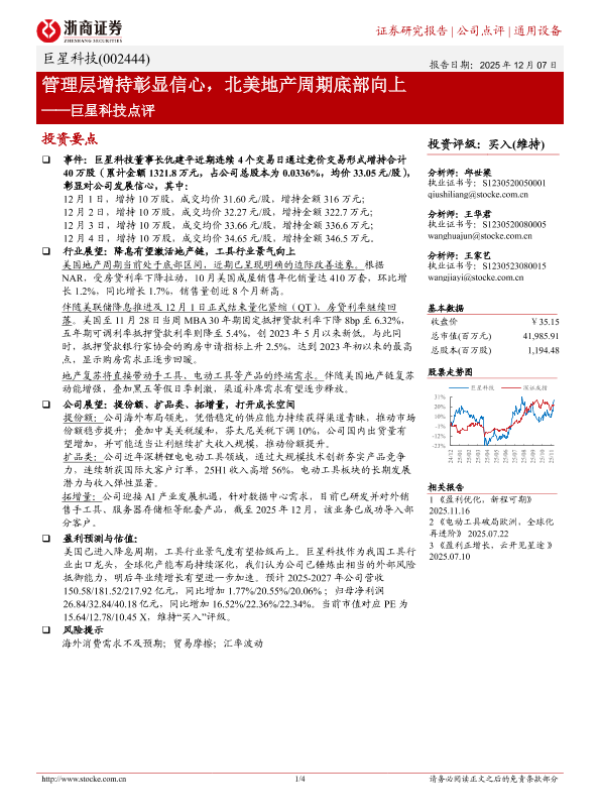 【浙商证券】【202512】巨星科技点评-4页 证券期货研究报告