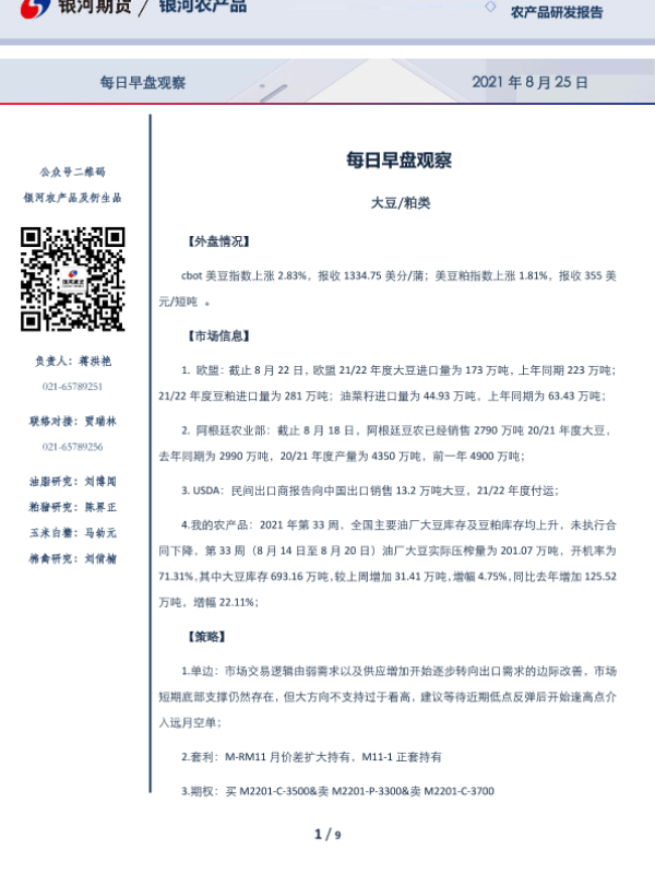 【银河期货】【20210825】每日早盘观察-9页 行业研究