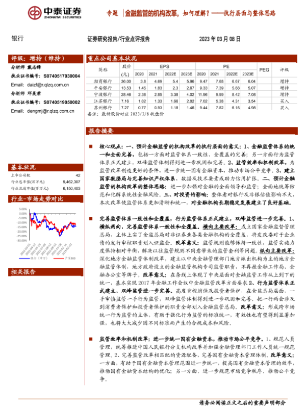 【中泰证券】【20230308】银行专题:金融监管的机构改革,如何理解?——执行层面与整体思路-14页 行业研究